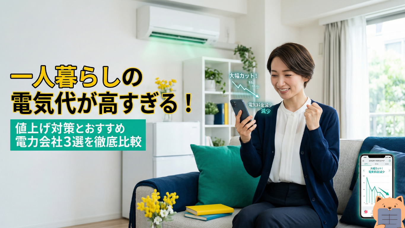 一人暮らしの月平均電気代は約5,000円前後(季節や生活スタイルで大きく変動)。まず自分の使用量を把握し、ライフスタイルに合った電力会社に乗り換えるのが最も効果的な節約法です。