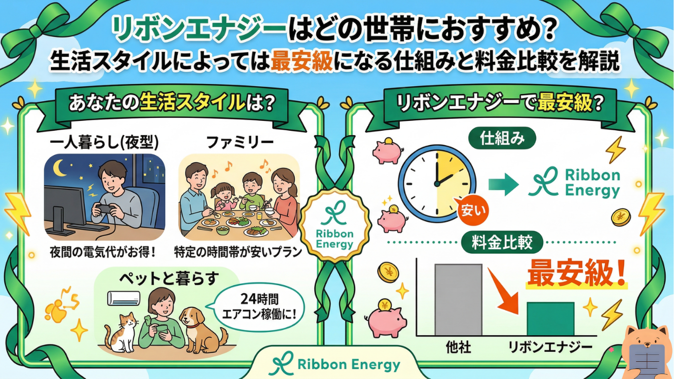 リボンエナジーはどの世帯におすすめ?生活スタイルによっては最安級になる仕組みと料金比較を解説