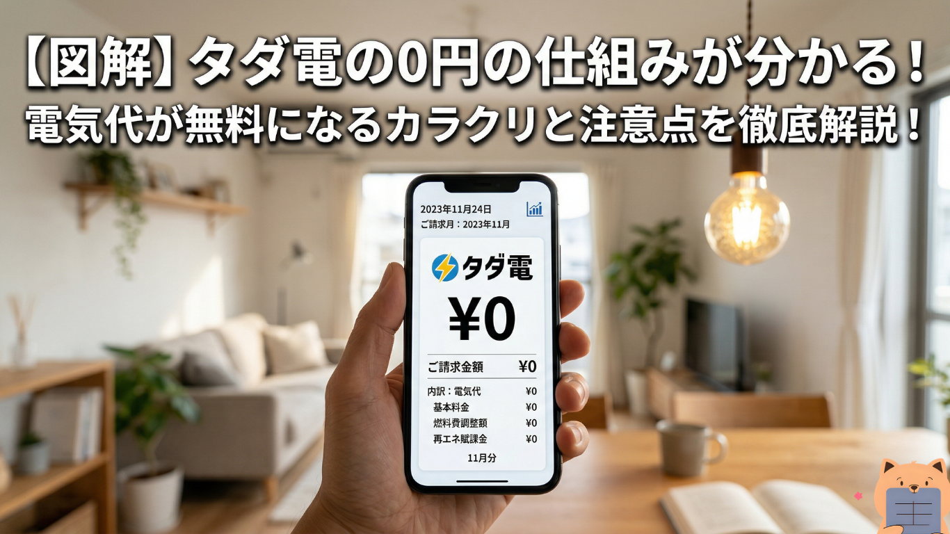 本記事では「タダ電 仕組み」で検索している方が知りたい情報を網羅し、5,000円分が0円になるカラクリ・東京電力との料金比較・申し込み方法・注意点・実際の口コミまで、すべてわかりやすく解説します。