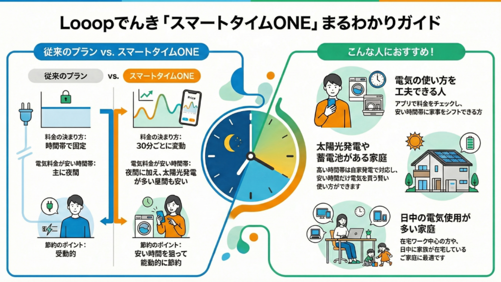 そこで新たな選択肢として注目されているのが、Looopでんきが提供する「スマートタイムONE」というプランです。