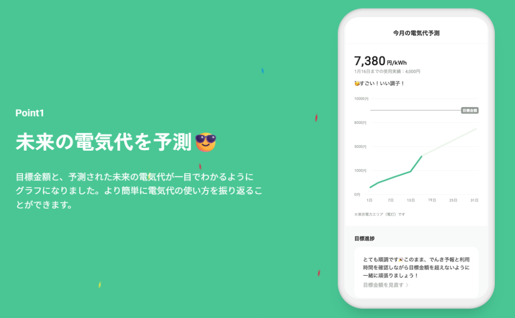 POINT②:専用アプリの「でんき予報」で明日の料金単価をゲーム感覚でチェック