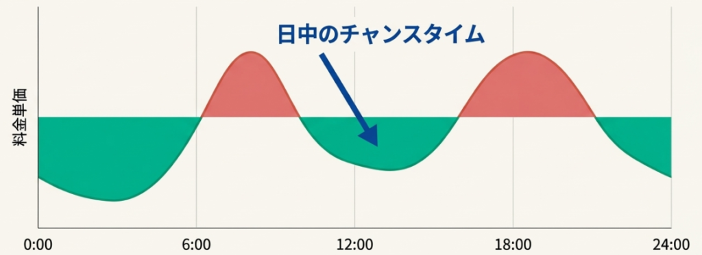 | 昼間の電気料金 | 割高に設定されていることが多い | 供給過多の時は安くなるチャンスがある |