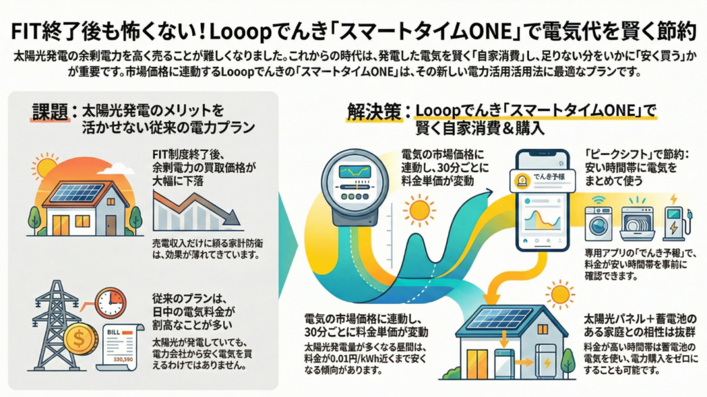 この記事では、なぜLooopでんきが太陽光ユーザーにおすすめなのか、その理由と具体的な活用方法について詳しく解説します。